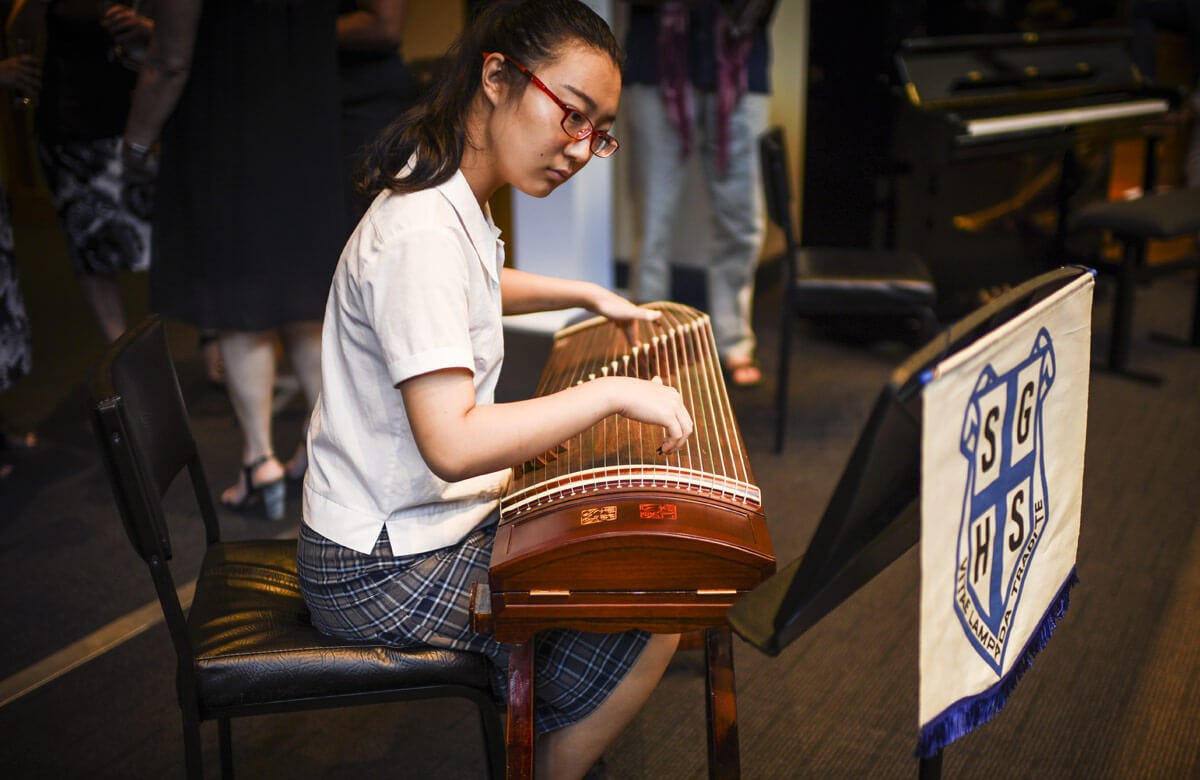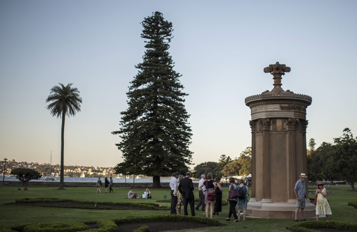 When the time came for the enchanted procession, the air had cooled, the birds were out, and the clouds were pink. And this time, a special treat: The Ballad of Lysicrates, composed, and sung, by Mrs Linda Hurley, the wife of the Governor of New South Wales, David Hurley. Smiles all round, more dancing, and the traditional joyous atmosphere. A very happy day.