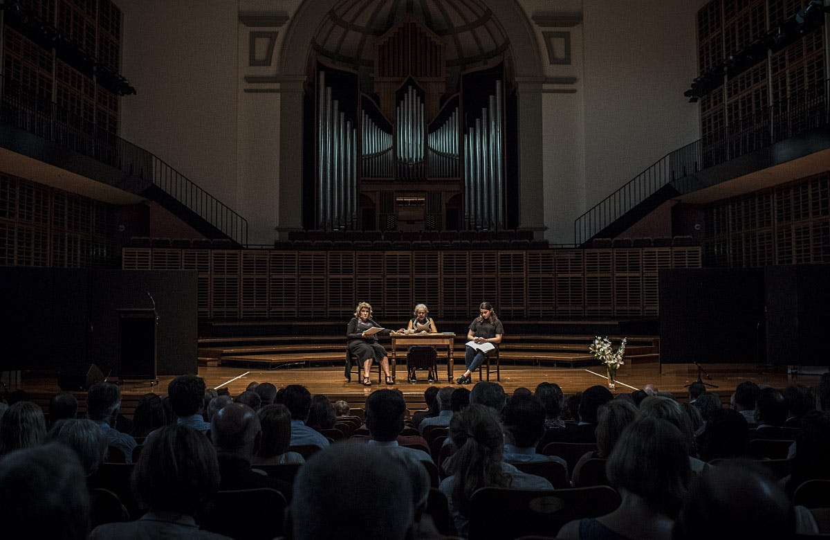 The now traditional didgeridoo set the day in motion, and then the plays took over.The Goose in the Bottle, with its one heartbreaking line spoken by the ageing woman: “so lonely”, so brilliantly acted;The Feather in the Web, about a young woman who wants to live her life her own way; andGhosting the Party, an old woman facing confinement in a nursing home, and death. All of the plays showed a very Australian, very clever, ability to straddle the line between tragedy and laughter, and indeed this shading from one to the other has actually been a hallmark of many of the Lysicrates plays. The acting was beyond extraordinary. We’re blown away by the talent of Australian actors.